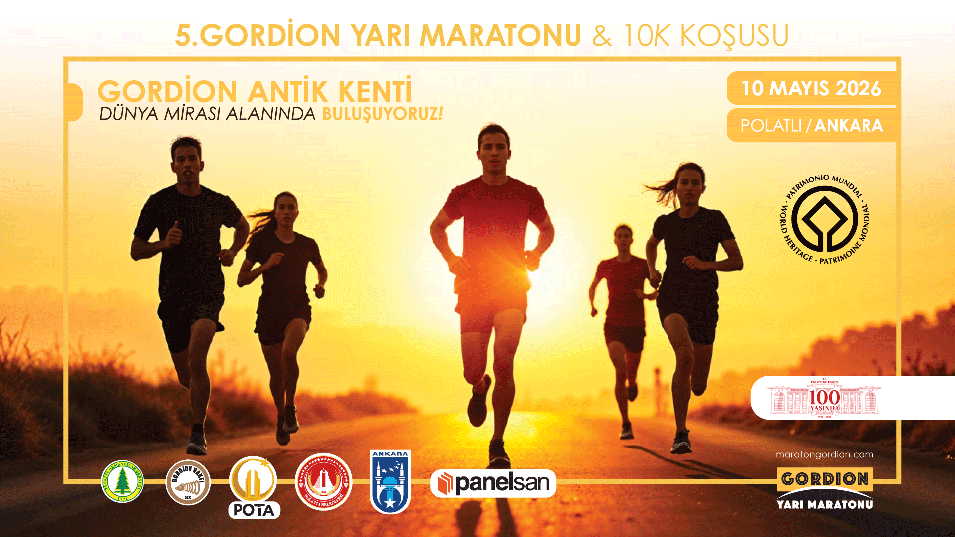 5. Gordion Yarı Maratonu ve 10K yarışları ise; bu kez GORDİON VAKFI’nın öncülüğü ve iş birliğinde aynı amaç ve hedeflerle 10 Mayıs 2026 Pazar günü GORDİON TARİHİ ALANINDA, aynı parkurda gerçekleştirilecektir.